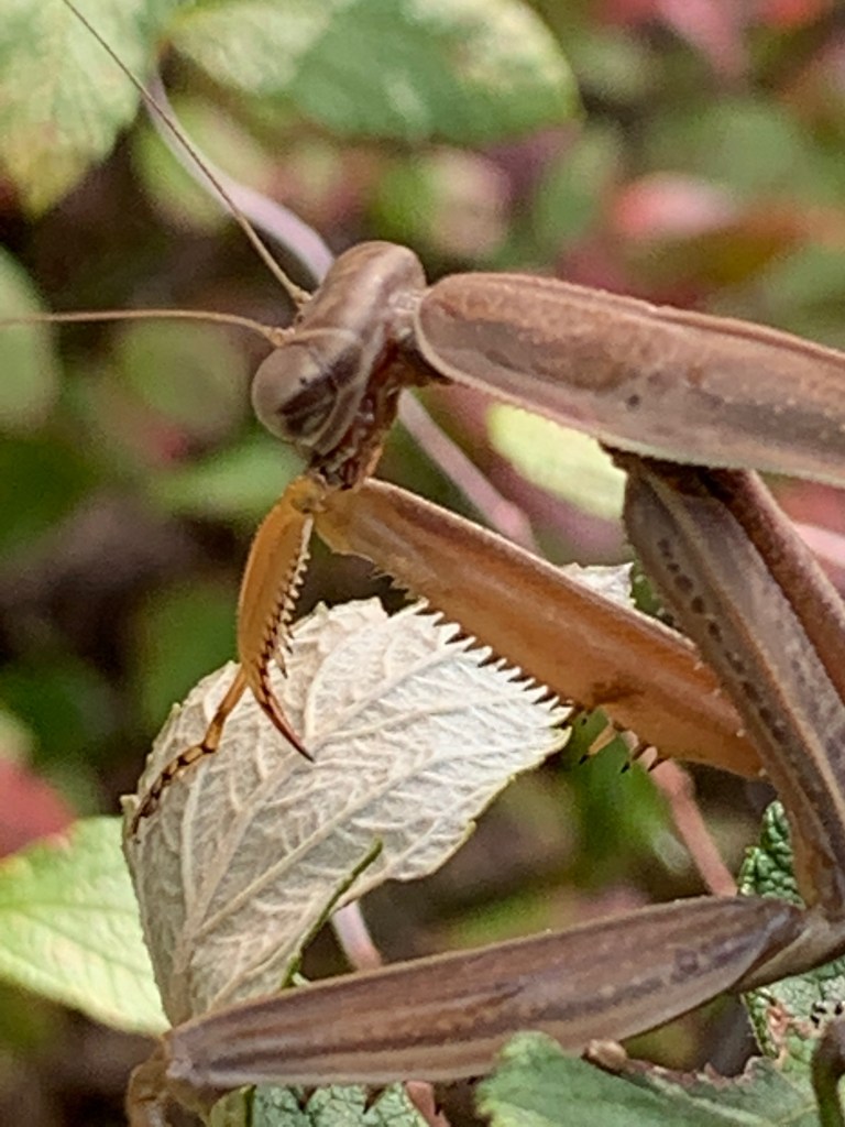 The mantis doesn’t mind my weepy eyes. I feel accepted by non-human creatures.