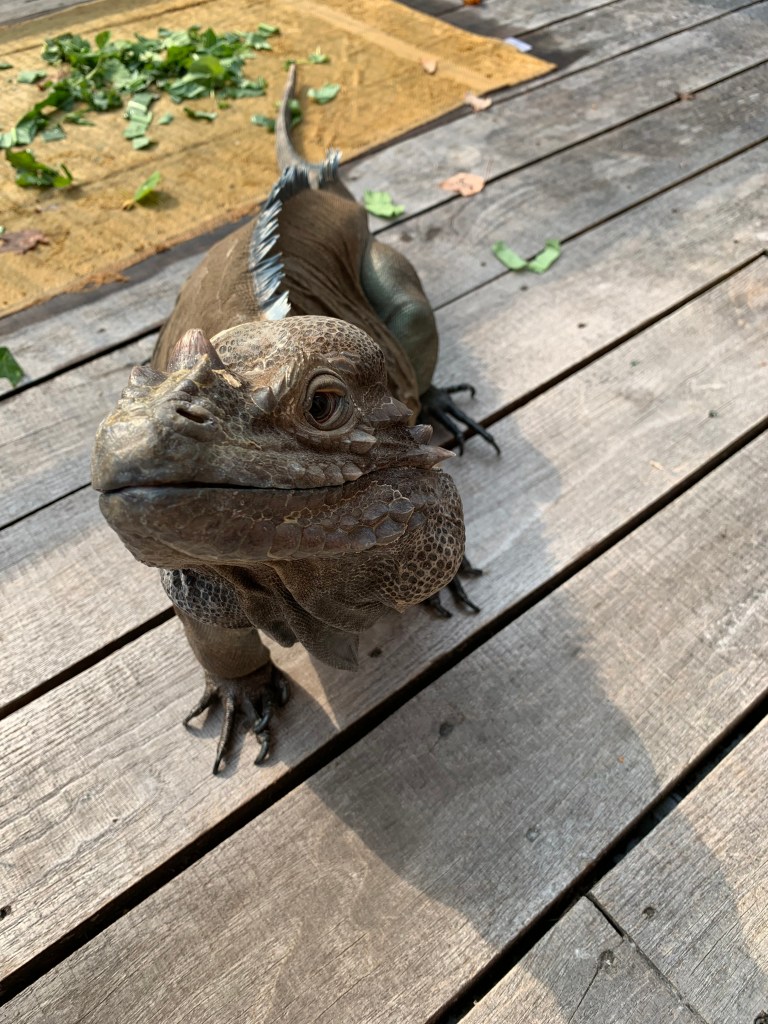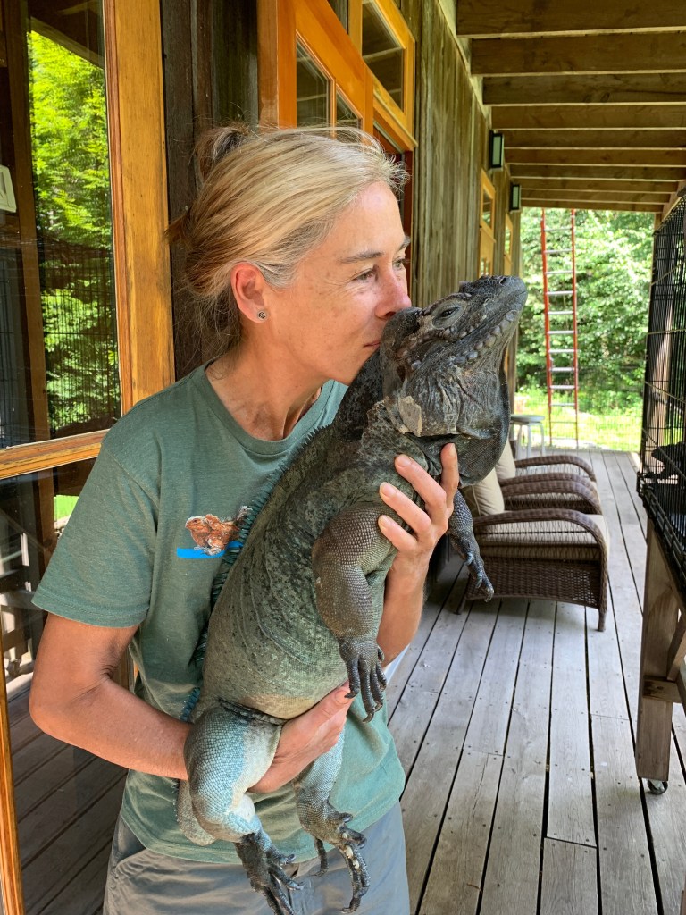 Many years ago, in the Florida Keys, my friend Robert Ehrig bought a couple acres of tropical scrub forest and set about building a house on posts, to be safer during hurricanes and floods. When the trees he planted grew up, it would be like living in a tree house. Water came from a cistern in the oolitic limestone underground, and he put in a composting toilet and electricity. Bob’s love for and knowledge of the plants and animals of Florida and the Caribbean inspired me. He was creating a home where he could live closely with wildlife and nature. Over time he restored that patch of land to what it was before Europeans came. He brought in tiny cacti thought to be extinct, trees and orchids and bromeliads native to the keys. Anole lizards skittered up and down the trees. Hummingbirds sipped from the bromeliads and orchids. In the middle of this paradise, he built pens and cages for lizards –big ones, West Indian rock iguanas.
