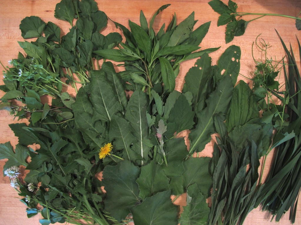 In the spring and summer, I also make a mash in the food processor. I don’t add the dried plants when I’m getting fresh ones. I aim to get 5 or 6 different kinds of wild plants in their mixes. In March, I start finding winter cress, garlic mustard, a species of chickweed, and as the spring gets warmer, colt’s foot, and soon after, dandelion leaves, and wild lettuces, and blackberry, raspberry, and wild rose shoots. Yellow dock will push up from thawed ground, and narrow-leaf plantain, which has survived ice and snow. By summer, there will be lamb’s quarters, lots of dandelion, wild amaranth, clover, smartweed, purslane, and others to add to the mix. I have a Field Guide to Wild Edible Plants. Each year I learn about new plants to add to the iguanas’ diet. It’s not scientific, but I always taste the plants. When winter cress blooms it is very bitter, and the lizards don’t seem to like it. There are just a few dangerous plants, like deadly nightshade, and dog’s bane.