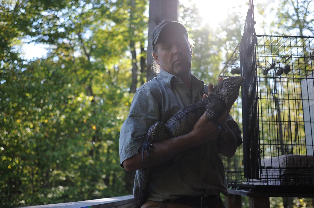 On a hot summer day in Florida, during one of my visits to Bob’s place I sat on the ground inside a pen Bob called “Hispaniola” (the Dominican Republic), where rhinoceros iguanas basked in the sun like a gathering of dragons.